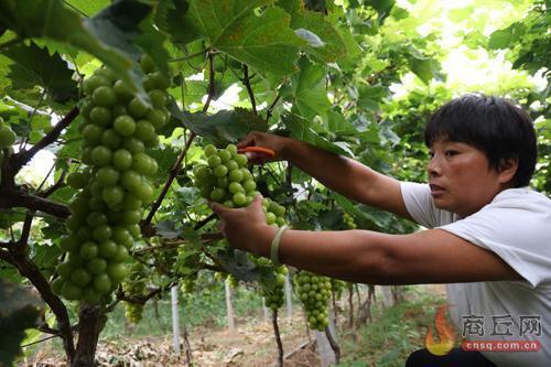 9月20日,睢阳区闫集镇西街村葡萄园内,种植户在采摘“阳光玫瑰”葡萄。“阳光玫瑰”葡萄具有清甜爽脆、香味浓郁等特点,比较受市场欢迎。该园的“阳光玫瑰”葡萄自6月份成熟以来,销售十分火爆,小小的葡萄成为该村群众的“致富果”。本报融媒体记者 邢 栋 摄