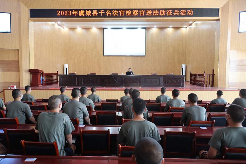 近日,虞城县人民法院会同该县人民武装部对预定新兵开展“送法助征兵”活动,为即将入伍的预定新兵送上入伍前的法治课。 通讯员 张朋 李朝辉 摄