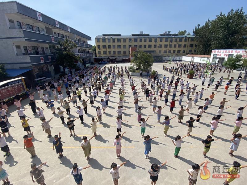夏邑县中峰乡中心小学始终以发展体育、强健体魄为重要任务,以活力大课间为依托,打造阳光教育乐园。图为近日该校学生在大课间做武术操,催人奋进的音乐和整齐划一的动作,让学生在运动中享受快乐,锻炼技能。