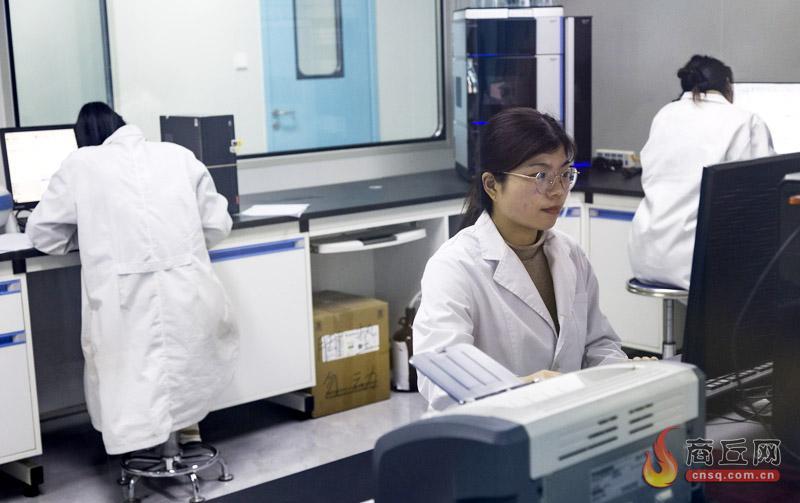 9月26日,技术人员在研发验室内忙碌着。柘城县美兰集团是一家专业从事动物疫苗研发、诊断试剂、干扰素、动物保健品等研发、生产、销售及服务传播的现代化高新技术公司,建设有10条高性能、高精度、智能化、自动化动物制药生产线,总投资10.6亿元。
