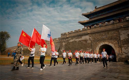 全体85人分为三组,围绕商丘古城进行了长达9公里的徒步行走。徒步过程中,全体人员合唱了《团结就是力量》、《打靶归来》等一首首脍炙人口的红歌,期间穿插了弹瓶盖等游戏环节为活动增添了一抹色彩。
