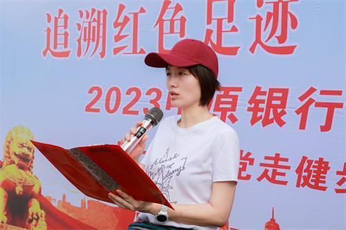 活动开始前,由分行党委书记、行长邱景致辞,她对分行全体员工长期以来的辛苦付出表示衷心感谢,提倡全体员工工作之余走进大自然,投身健身运动,不断增强体魄,保持健康心态,共享全行和祖国发展成果,同时向大家提前送去双节节日祝福。