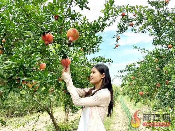 10月6日,游客在民权县孙六镇孙北村石榴采摘园里采摘石榴。近年来,民权县委统战部指导该村以创建“产业兴旺星”为抓手,助推“五星”支部创建,不断完善“一村一品”产业布局,大力支持村集体和村民发展蔬果、养殖等特色产业,让村民在家门口实现稳定就业、助农稳产增收。记者 闫鹏亮 摄