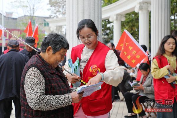 志愿者向居民发放县文明实践指导中心编写的市民文明手册。记者 闫鹏亮 摄