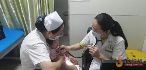 齐永静(右)为患儿做检查。 本报融媒体记者 张博 摄