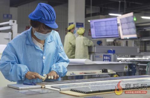 示范区威力新能源科技有限公司工人生产太阳能组件。 本报融媒体记者 崔 坤 摄