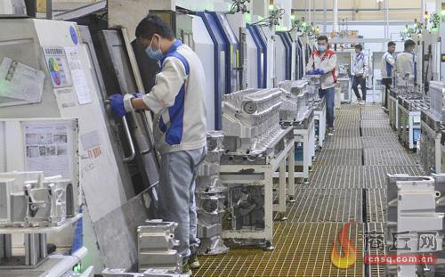 浩天汽车科技有限公司工人们在汽车零部件生产车间忙碌着。 本报融媒体记者 崔 坤 摄