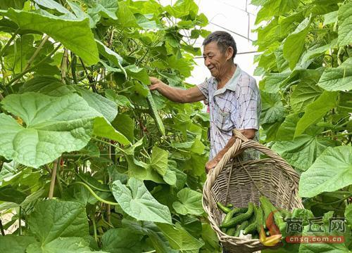 示范区周集乡现代农业产业园,菜农在收获黄瓜。