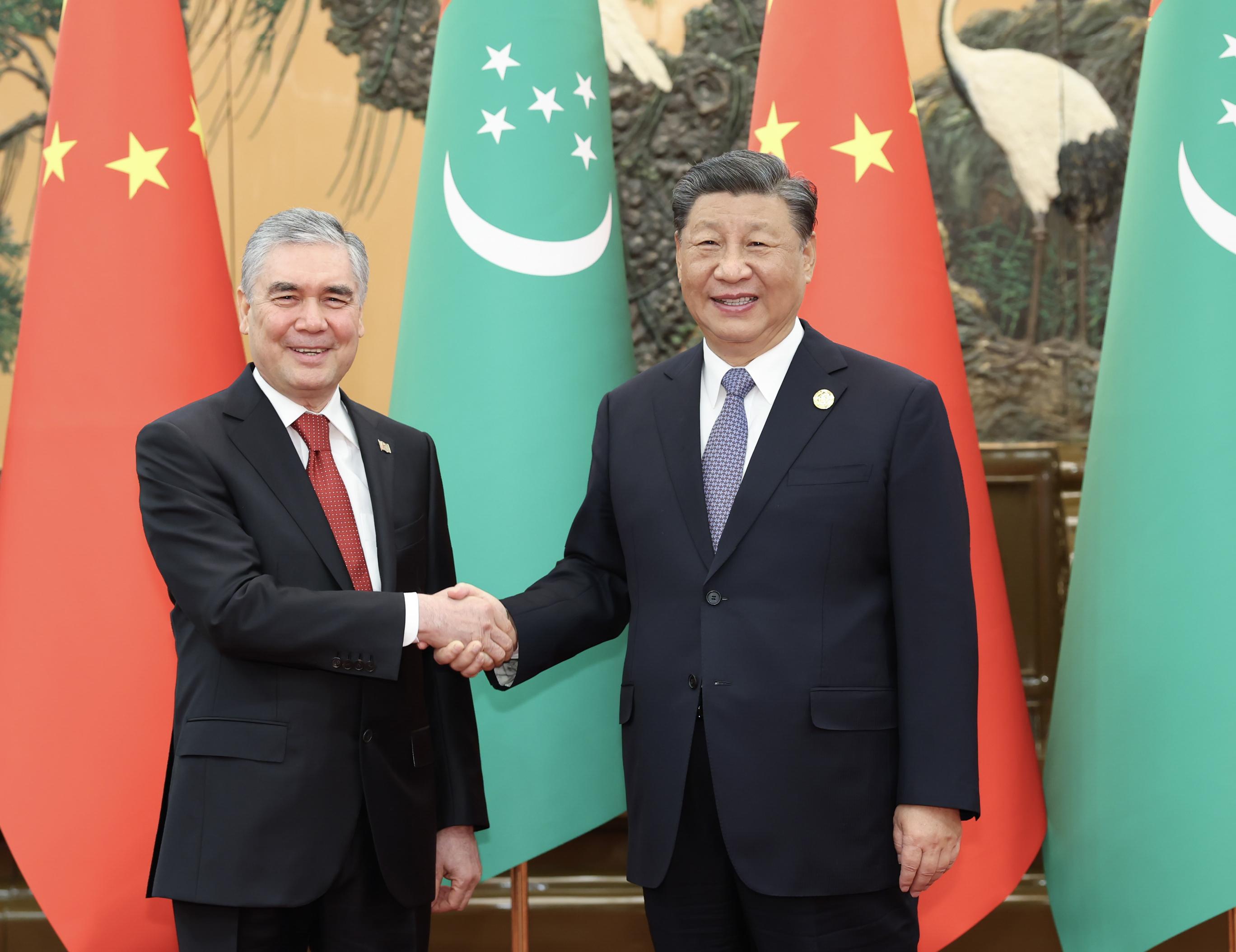 10月19日上午,国家主席习近平在人民大会堂会见来华出席第三届“一带一路”国际合作高峰论坛的土库曼斯坦民族领袖、人民委员会主席别尔德穆哈梅多夫。