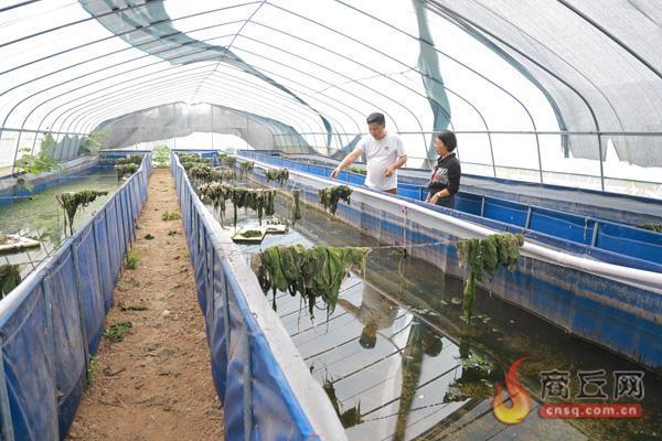 10月24日,柘城县伯岗镇伯东村党支部书记刘洪涛(左)向群众介绍水蛭养殖情况。近年来,伯东村积极探索特色种养发展之路,打造水蛭养殖产业园,助力乡村振兴。 张 超 摄