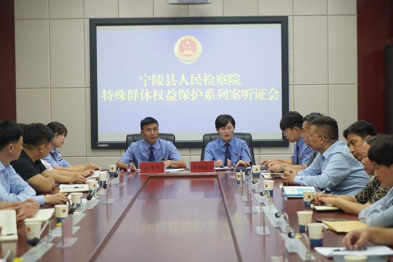 为推动辖区内特殊群体保护得到有效落实,9月14日,宁陵县人民检察院组织相关行政单位召开特殊群体权益保护系列案公开听证会,还邀请省人大代表、人民监督员、律师代表作为听证员,对该案进行公开听证。会上,检察官介绍了案件相关情况及需要听证的问题,行政机关对存在问题作了进一步说明。