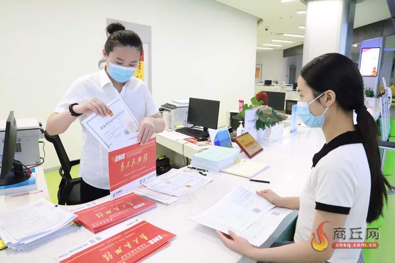 该局工作人员为办事群众邮寄营业执照。 本报融媒体记者 马晓伟 摄