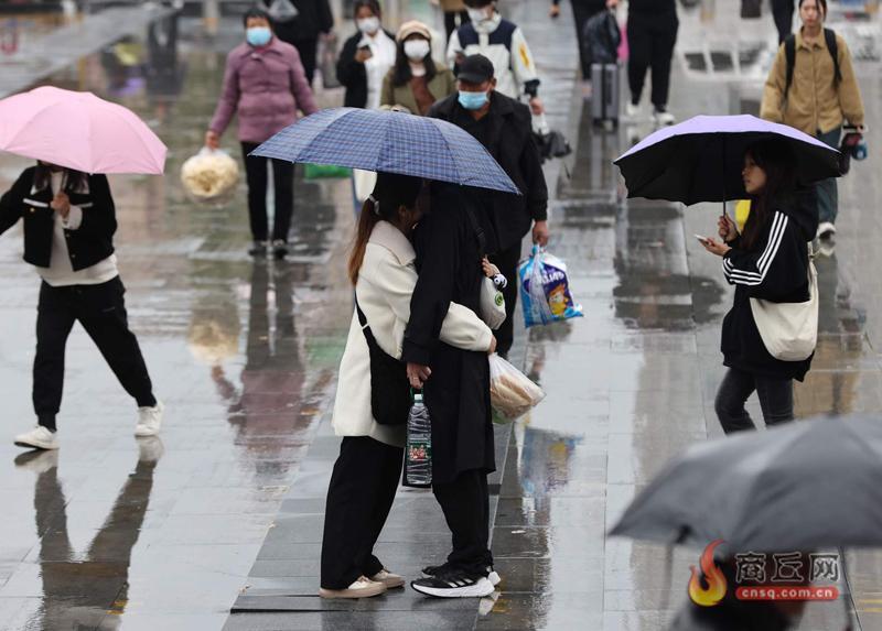 11月5日,商丘火车站,一对年轻人在惜别中。当日,为服务旅客出行需求,郑州铁路局加开商丘至武汉G4635/6次、郑州东至商丘G9200/99次高铁直通列车,助力旅客便捷出行。