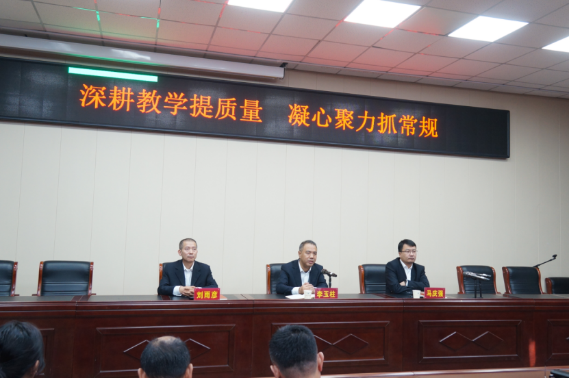 最后,党委书记李玉柱肯定了各年级开学以来所做的工作。他表示,教学质量是学校的生命线,教育教学永远是学校工作中最重要的一环,也是教师安身立命的法宝。他要求,年级部管理要精细化,狠抓教学、班级常规管理,形成齐抓共管的局面,提高工作效能;要立足新课程、新教材和新高考,研究教考衔接、学考结合、教学相长的有效路径,进一步提升课堂教学质量;要做好学生的思想动员和心理辅导工作,激发学生的内在学习动力,促进学生的心理健康发展;要切实做好培优工作,抓紧做实压线生辅导工作,确保优秀生培优护苗行动取得显著成效。