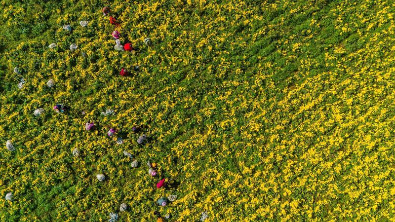 11月12日,宁陵县张弓镇北村,金灿灿的菊花盛开,村民正在采摘金丝皇菊,一派繁忙景象。近年来,张弓镇通过“同心圆·共发展”结对帮扶,不断优化农业产业结构,发展菊花产业,形成了集菊花种植、加工、销售于一体的产业链,壮大村集体经济,助力乡村振兴。 徐硕 摄