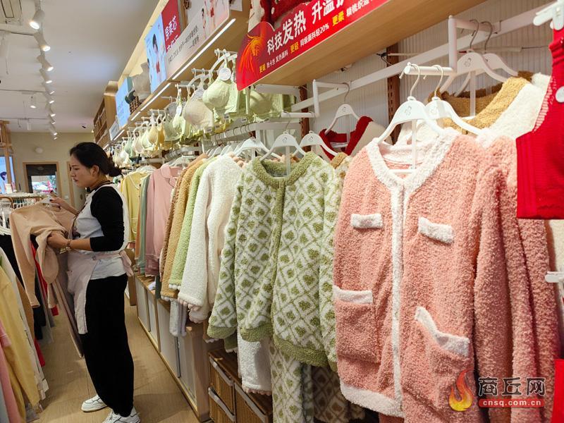 在信华天街一家服饰店内,店员正忙着上架新到的围巾。她表示,由于近几日气温突降,手套、围巾、帽子等御寒物品的销售量增长明显。