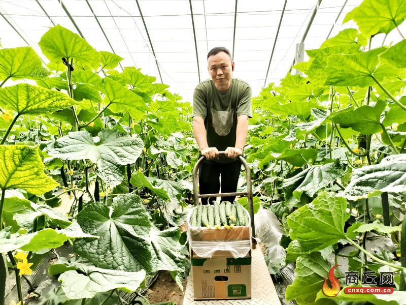 11月14日,民权县绿洲街道办事处吴庄村村民在采摘黄瓜。今年以来,该办事处坚持党建引领,以党建链赋能“产业链”,不断壮大发展优势特色蔬菜产业集群,增加群众收入。
