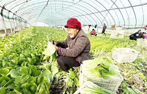 “俺年龄大了,出去不好找工作。现在家门口很多大棚,在家没事就出来收割蔬菜,干一天活能挣六七十元。”今年50多岁的村民赵秀芝边割菜边说。
