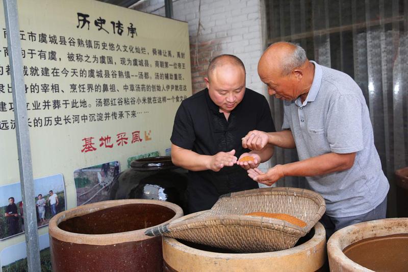 “我在家门口打工,能照顾家人,还能挣钱,上个月我领了3000多元工资。”在县熟镇朱阁村的“汤都红粘谷酒传统酿造技艺”非遗工坊务工的村民刘大任高兴地说。