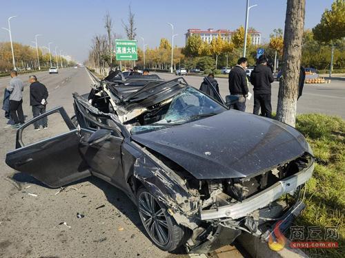 11月21日上午,在归德路与华商大道交叉口南侧,一辆私家车与一辆大货车发生碰撞,私家车扎进了路旁的绿化带。记者在路口看到,私家车顶部严重变形,车内人员没有受伤。据附近市民介绍,私家车钻到了大货车下面。事故具体原因,交警正在调查处理中。