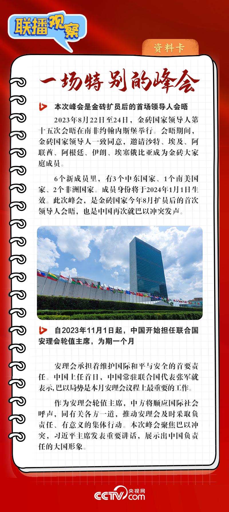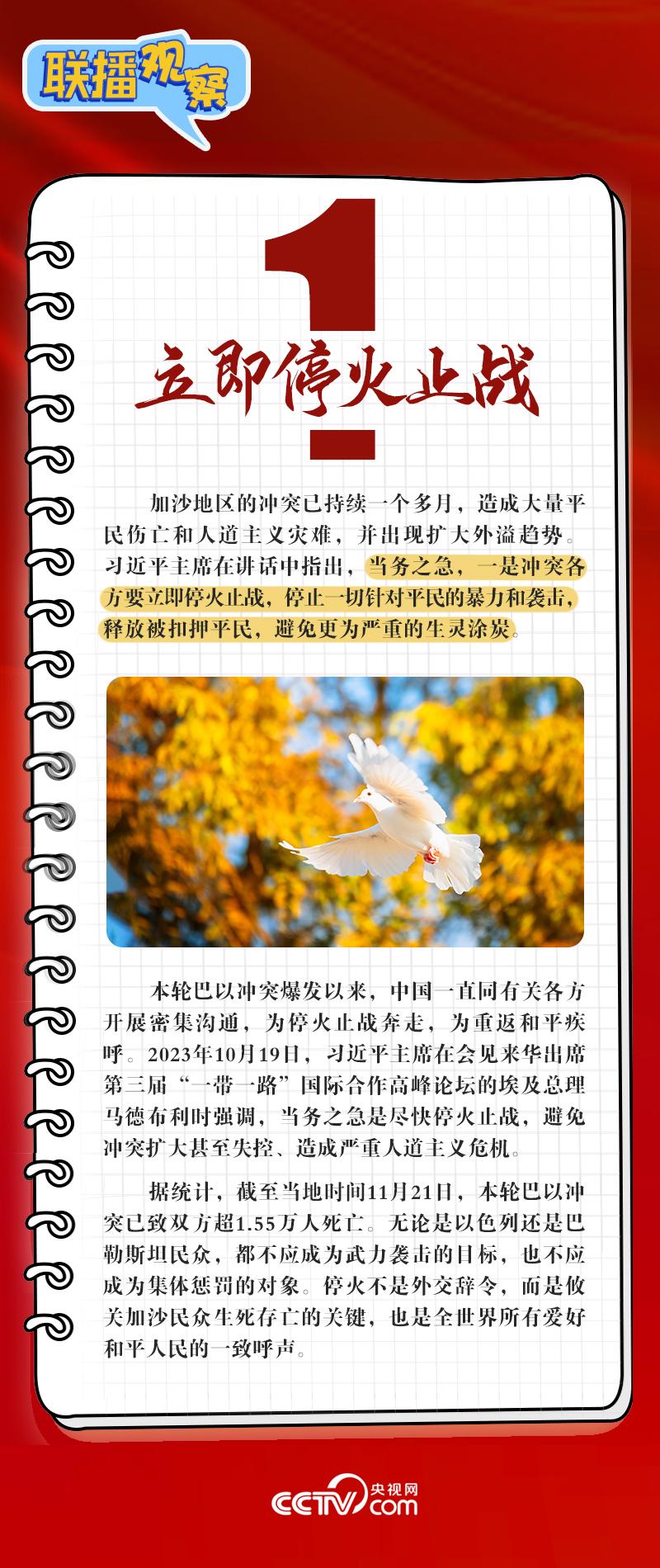 “当前形势下,金砖国家就巴以问题发出正义之声、和平之声,非常及时、非常必要。”在本次会晤中,习主席结合当下巴以局势,提出三点正义主张。