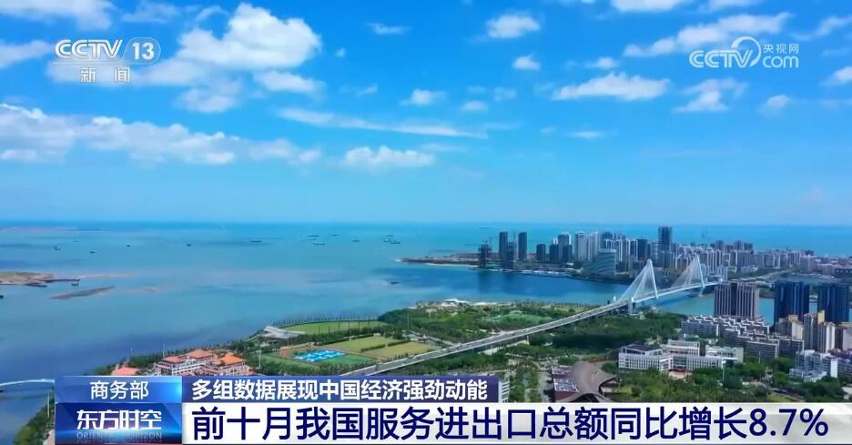 央视网消息:近日,商务部、财政部、工业和信息化部等发布今年前十个月我国服务贸易、全国国有企业经济运行和互联网业务等领域的多项数据。这些数据再次印证中国经济韧性强、潜力大、活力足。