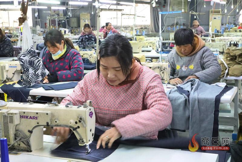 柘城县扶贫车间发展起来的纺织业,让很多脱贫户实现了家门口就业的愿望。图为慈圣镇肖庄村正在扶贫车间里工作的村民。