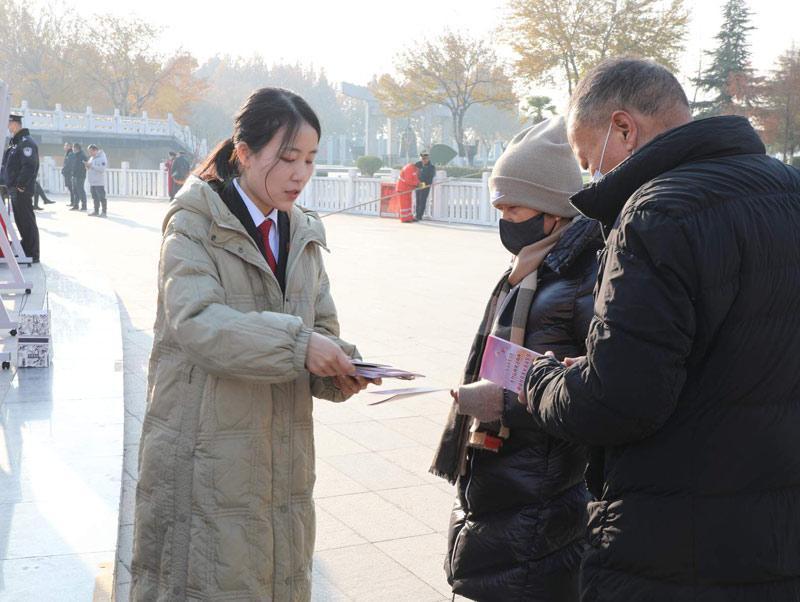 12月4日上午,市中级人民法院组织干警在商丘日月湖好人广场为群众开展法治宣传活动。 本报融媒体记者 梁晓晨 通讯员 刘艳磊 摄