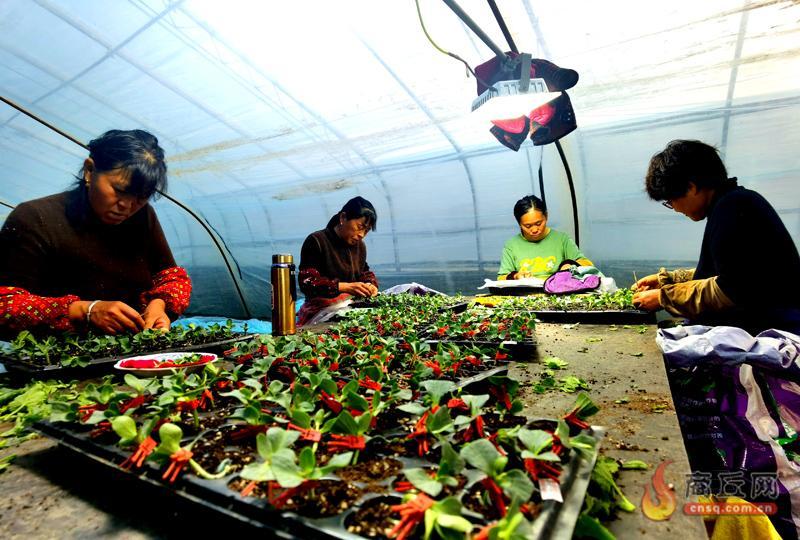 12月10日,在夏邑县北岭镇兴海育苗基地,工人在忙着嫁接西瓜苗。近年来,“中国西瓜之乡”北岭镇瞄准设施产业链育苗前端,大力发展育苗产业,使用植物组培、扦插嫁接、大棚育苗等技术培育瓜苗,服务全县西瓜种植产业高质量发展,助力乡村振兴。
