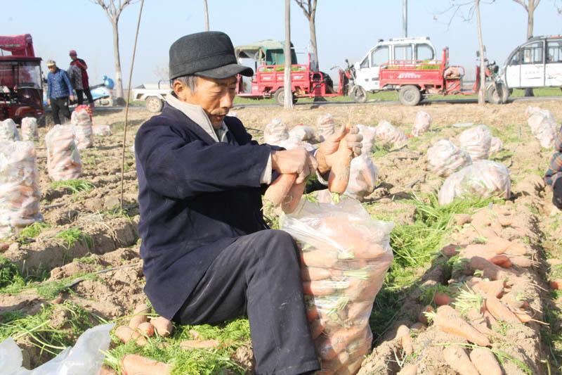 (图:村民将胡萝卜装袋。本报融媒体记者 闫鹏亮 摄)