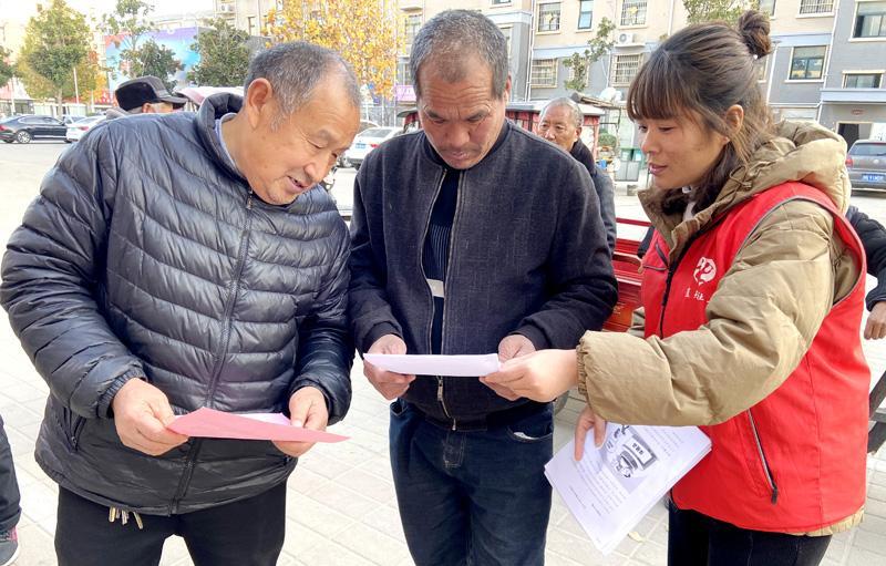 12月14日,民权县南华街道办事处社会工作者在给社区老人讲解防诈骗常识。该办事处社工积极开展“关爱老年人、守好养老钱”防诈骗宣传活动,切实让群众感受到“家门口”的温暖和幸福,助力“五星”支部创建,点亮“平安法治星”。本报融媒体记者 闫鹏亮 摄