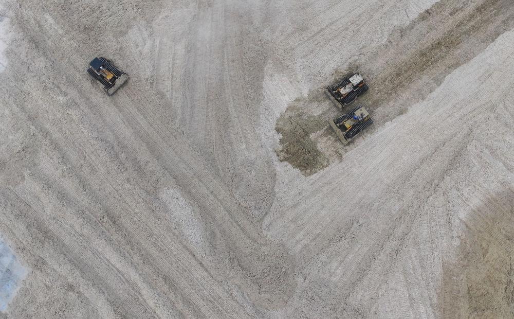 12月12日,在广西湘桂华糖制糖集团来宾纸业有限责任公司,工作人员在整理蔗渣(无人机照片)。