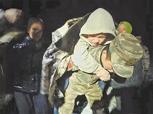 天灾无情,人间有爱。青海省民和县中川乡草滩村有一家四口被木板和墙体压到,外面是汹涌肆虐的砂涌,再加上零下15℃的低温侵袭,救援迫在眉睫。一声呼叫,换来集体救援。手刨泥土、搬卸墙体……严冬深夜,20多名村民齐上阵,半个小时后,一家四口中有三口被村民成功救出,另外一人仍在由后续赶来的人员紧急救援中。