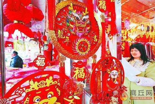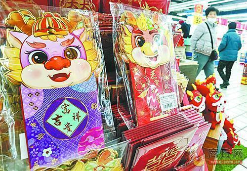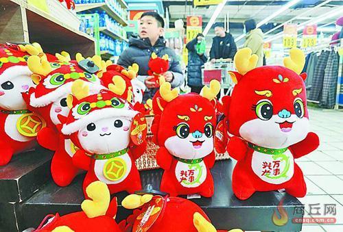 12月18日,在凯旋路立交桥附近的年画市场,市民正在选购新年饰品。记者当日在市区多家超市看到,含龙元素的布艺玩偶,带有龙图案的红包、福字、挂件等饰品吸引了不少市民的目光。元旦临近,各类新年饰品琳琅满目,格外喜庆。本报融媒体记者 魏文慧 摄