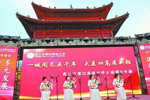 师生在商丘古城参加广场文艺演出。
