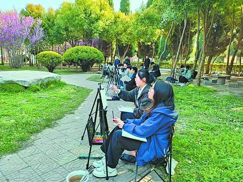 学生在校园内写生。
