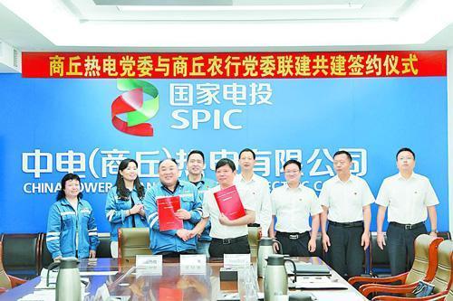 中国农业银行商丘分行与中电(商丘)热电举行“党建联建共建”签约揭牌仪式。
