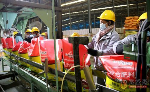 ◀嘉施利(宁陵)化肥有限公司的工人们正在各自岗位忙碌。