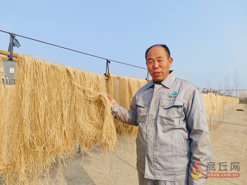 1月7日,民权县程庄镇焦堂景旭粉条销售有限公司负责人向客户介绍晾晒的各色粉条。近年来,程庄镇把“乡村振兴,产业先行”作为村民致富的出发点,不断提升村民的幸福感。