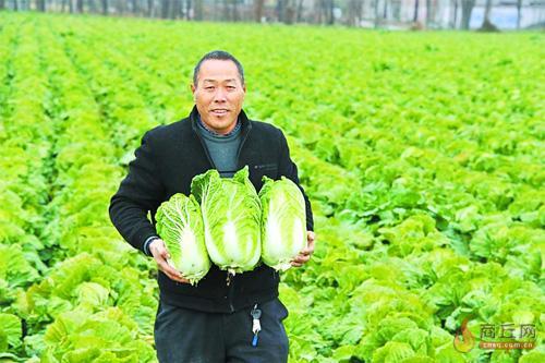 走进许宝存在河南省夏邑县王集乡彭井村的宝存种植专业合作社大白菜示范基地,只见300亩白菜一行行整齐地码在地里,等待时机出售。