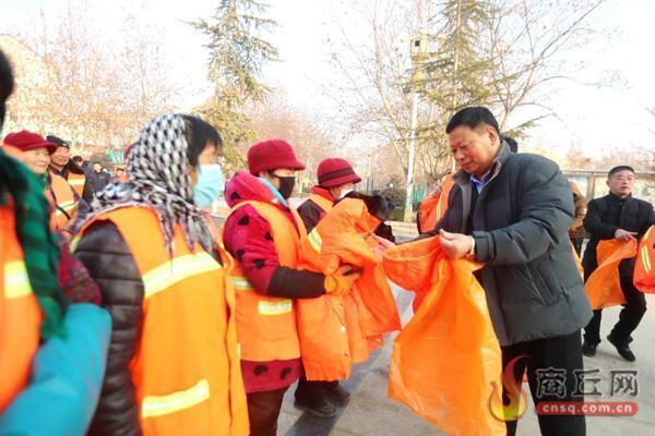 1月11日,民权县工商联联合多家爱心企业向民权县环卫工人捐献环卫防寒工作服600件。捐赠企业负责人表示,通过此次捐赠活动向环卫工人表达最真诚的敬意,感谢他们为营造干净、整洁的城市环境所付出的辛勤努力。记者 闫鹏亮 摄