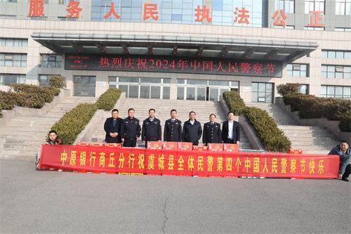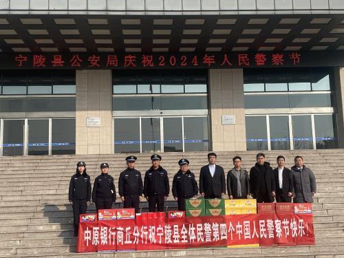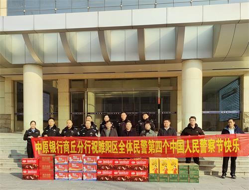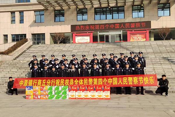 据悉,当日中原银行开发区支行、香君支行、永城支行、民权支行、睢县支行、宁陵支行、夏邑支行等11个网点负责人分别带队到所属警局单位向长期坚守在一线的民警送上节日祝福和问候。