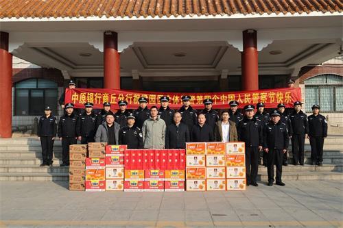 1月10日,在第四个“中国人民警察节”来临之际,商丘分行及各分支机构前往商丘市公安局和辖内各级公安机关开展慰问活动。
