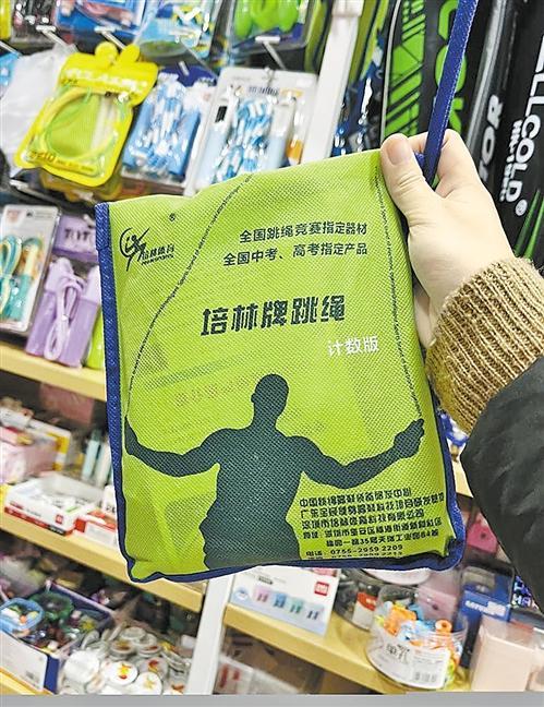 在重庆,记者以家长身份走访主城区多家中学周边文具店,问及是否售卖“中考跳绳”时,多名店主不约而同向记者推荐同一品牌——培林牌跳绳。