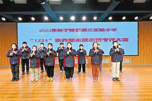 近日,宁陵县第三实验小学举办2023年秋“1234”素养期末展示暨考评大赛。小小的舞台上演绎着孩子们大大的梦想,精彩的表演彰显不俗的实力。通讯员 夏金明 摄