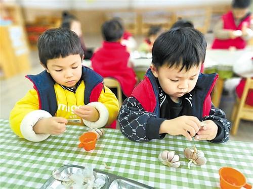 1月18日,商丘市第三幼儿园(明伦路园)开展腌制腊八蒜趣味活动,老师向孩子们讲述腊八节的习俗和腊八蒜的制作方法,并领着小朋友们动手制作腊八蒜。本报融媒体记者 谢海芳 摄