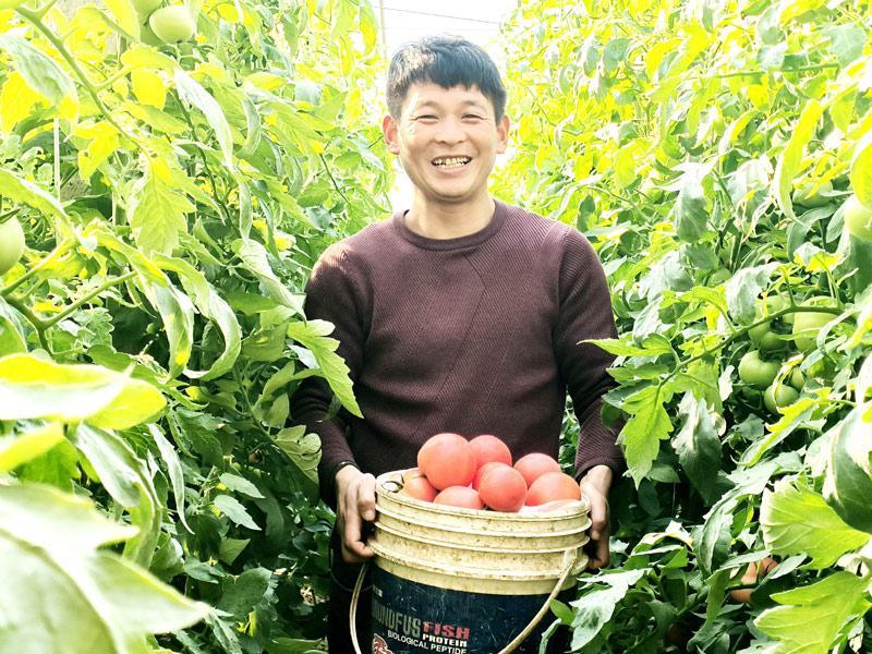 在陈风伟的指引下,记者走进村民于世俊的西红柿大棚,映入眼帘的是生机盎然的藤蔓,绿叶掩映之下,西红柿挂满了枝头,红彤彤的,煞是好看。于世俊和家人正在大棚里劳作。“今年又是一个丰收年,因为西红柿的品质好,很受顾客欢迎,固定客源越来越多!”于世俊笑着说。