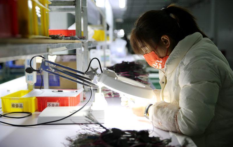 1月22日,河南金坤科技有限公司员工正在智能化生产线上作业。近年来,宁陵县围绕化工、生猪、酥梨和信息与设备制造四大产业,持续以大项目带动产业延链补链强链,全力发展电子信息产业,培育新兴智慧产业,建成了占地面积300亩的智慧产业园,河南金坤科技、华坤电子等6家电子企业已经成功入驻。 本报融媒体记者 高会鹏 摄