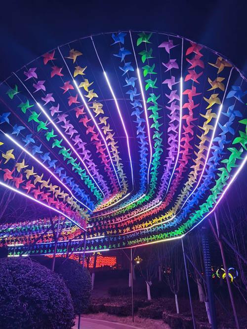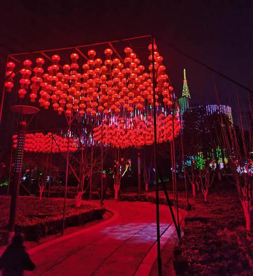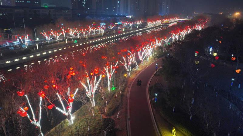 1月30日傍晚,神火大道旁运河两岸,大红灯笼和景观灯饰交相辉映、流光溢彩、璀璨夺目,呈现出“火树银花不夜天”的热闹画面。春节临近,商丘街头处处张灯结彩、五彩缤纷,大街小巷洋溢着新春的氛围。