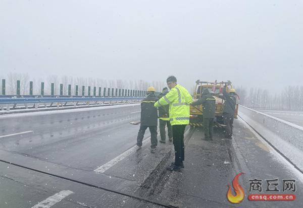 2月1日以来,我市出现大范围低温雨雪冰冻天气,交投集团商丘分公司养护管理部“以雪为令”,迅速行动,立即启动应急预案,采取多种措施快速除雪,同时实时监测路面、桥梁情况,动态监控雪情,全力保障高速公路安全畅通。 孙豫庆 韩璐 摄